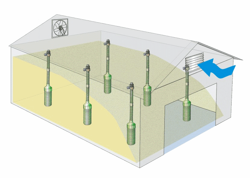 Konventionell golvventilation är dyrt att installera, kräver mycket manuellt underhåll och kan vara en bidragande faktor till skadlig inverkan på spannmålen, såsom insekter.